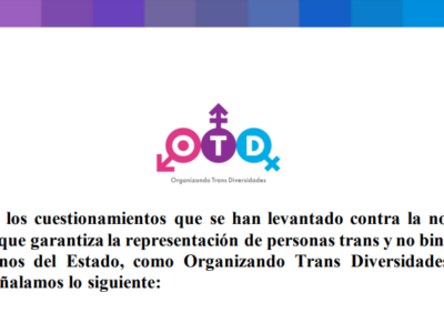Frente a los cuestionamientos que se han levantado contra la norma de paridad que garantiza la representación de personas trans y no binarias en los órganos del Estado, como Organizando Trans Diversidades (OTD Chile) señalamos lo siguiente: