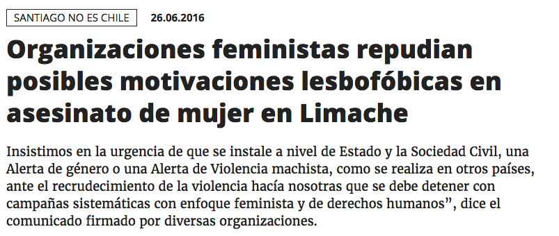 Comunicado publicado en El Desconcierto online, en el que se adhieren diversas organizaciones feministas de Chile, 28 de junio de 2016.