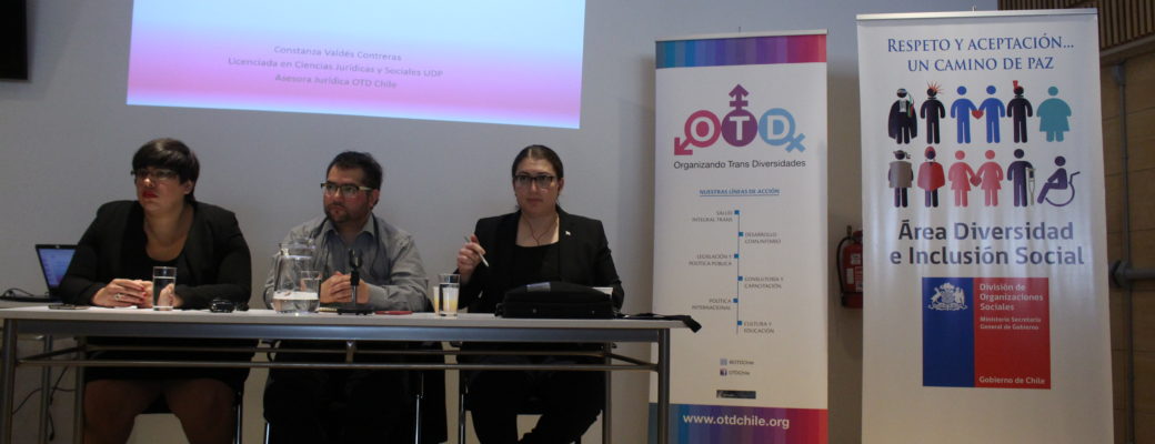 La asesora jurídica de OTD Chile, Constanza Valdés, recordó que si bien existe la ley 20.609, más conocida como ley Zamudio, prohíbe la discriminación, nunca se ha aceptado una acción de no discriminación por razones de identidad de género. También mencionó la existencia de la vía clínica para la adecuación corporal en personas con incongruencia entre sexo físico e identidad de género, creada en 2010 que se basa en la patologización de la persona trans.