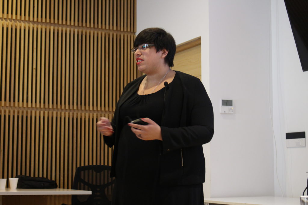 Su exposición se centró en el caso del Estado de Ontario, en el que se realizó la primera encuesta trans en 2010, que tuvo un universo de 433 personas entrevistadas. Los resultados provocaron un “shock” ya que demostró la marginación en la que vivían. Por ejemplo, la mitad ganaba menos de cien mil dólares al año, el 60% supo su identidad de género antes de los 10 años, el 20% corresponde a personas trans no binarias y la mitad de ellas ha pensado en suicidarse.