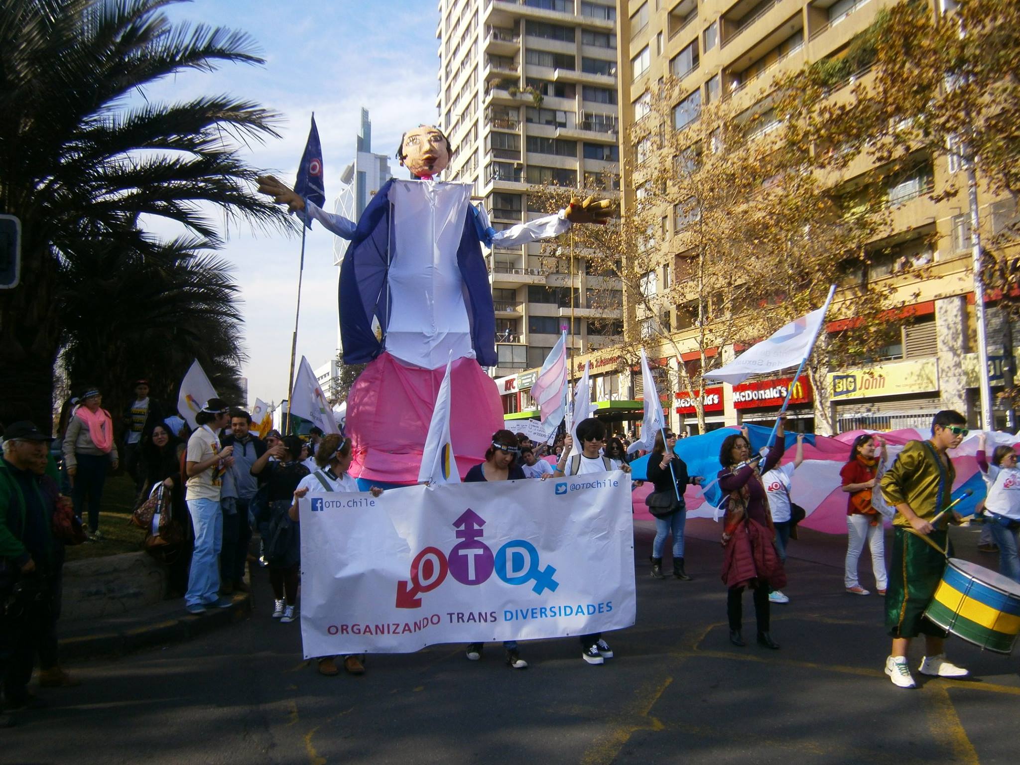 Bajo el lema “Juntxs por una ley de identidad de género” –Trámite Administrativo– encabezó las marchas de Santiago, Talca y Concepción el Frente de la Diversidad Sexual, red de organizaciones integrada por Asociación OTD, Fundación Iguales, Todo Mejora, MUMS, Fundación Daniel Zamudio, Rompiendo el Silencio, Acción Gay y Valdiversa.
