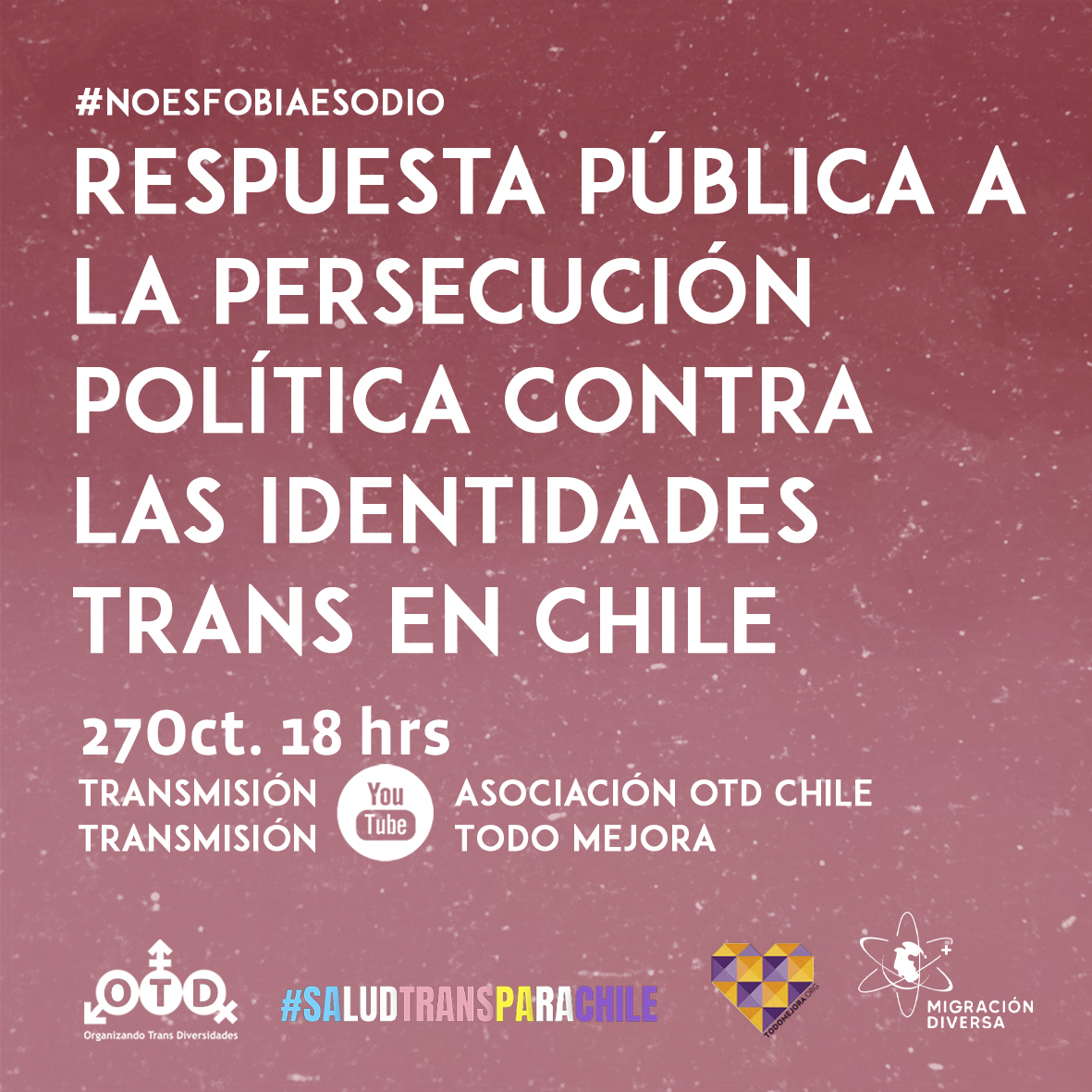 (Santiago de Chile, 27 de octubre de 2021).- Respondemos públicamente a la sociedad y aclaramos que la solicitud de información del diputado Cristóbal Urruticoechea a los Ministerios de Salud y de Hacienda en el mes de julio de 2021, así como a una serie de hospitales públicos del país, no es solo una persecución y ataque contra OTD Chile sino también un evidente hostigamiento en pro de criminalizar a las organizaciones, instituciones, universidades, fundaciones, dirigentes, activistas, colectivas que trabajan por los DDHH y especial en contra de quienes luchamos por la comunidad trans y diversidades y disidencias sexo-genéricas.