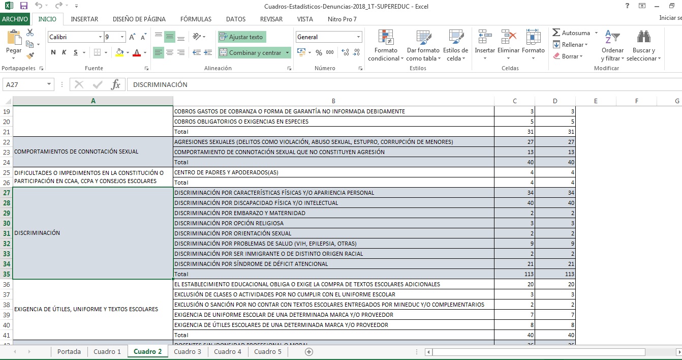 En 2017, estando ya vigente la circular de educación, las denuncias aumentaron a 12: una en Tarapacá, dos en Antofagasta, una en Coquimbo, dos en Valparaíso y seis en la Metropolitana.