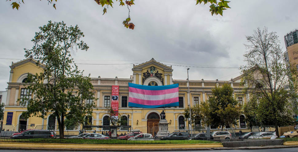 Organizando Trans Diversidades commemorated this year the day of trans visibility, which is remembered every March 31 in the world, with a cultural activity in the Library of Santiago and extending the trans flag in the front of the Central House of the University of Chile.